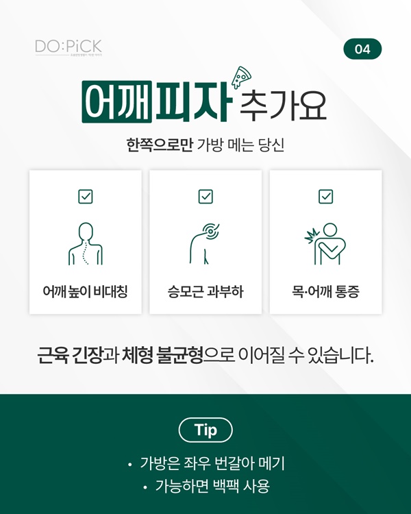 한쪽 어깨에만 지속적으로 하중이 실리면